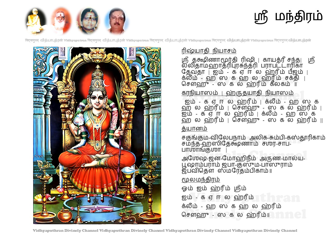 | 27 | SRI SAUBAGYAVIDYA PANCHADASAKSARI MANTRA TAMIL | Download |