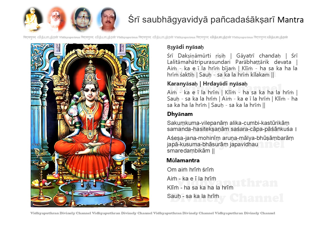 | 26 | SRI SAUBAGYAVIDYA PANCHADASAKSARI MANTRA SANSKRIT | Download |