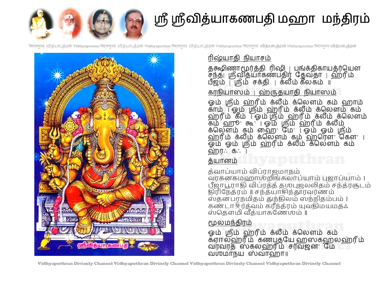 | 67 | SRI SRIVIDYAGANAPATHY MANTRA - TAMIL | Download |